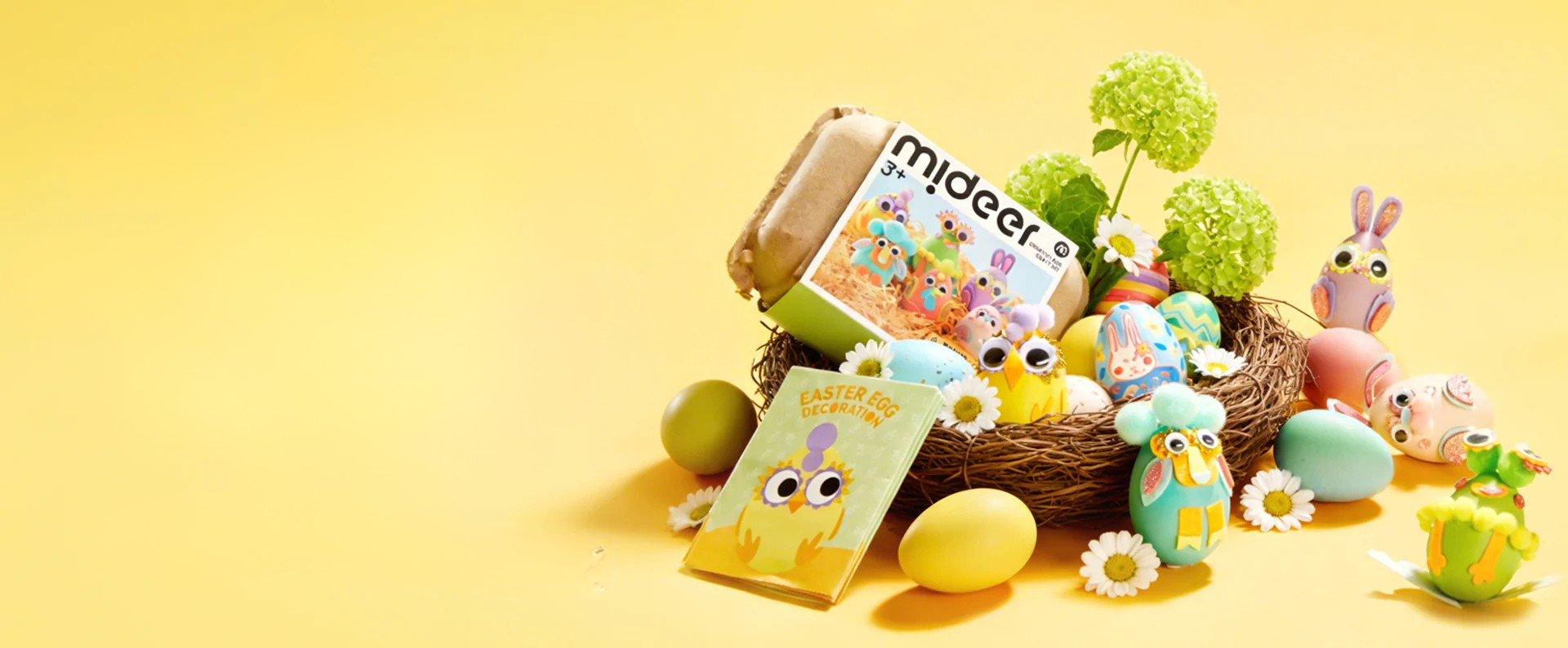 mideer kiaušinių dekoravimo rinkinys, kuriame yra 6 spalvoti kiaušiniai, kuriuos vaikai gali dekoruoti ir sukurti savo meno kūrinius. Su tikroviško dydžio kiaušiniais vaikai galės mėgautis dekoravimu įvairiais lipdukais ir sukurti gražų "pasidaryk pats" dizainą.
